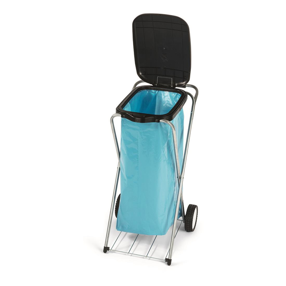 Abfallsammler 1-fach, Metallbeine, Deckel schwarz, fahrbar