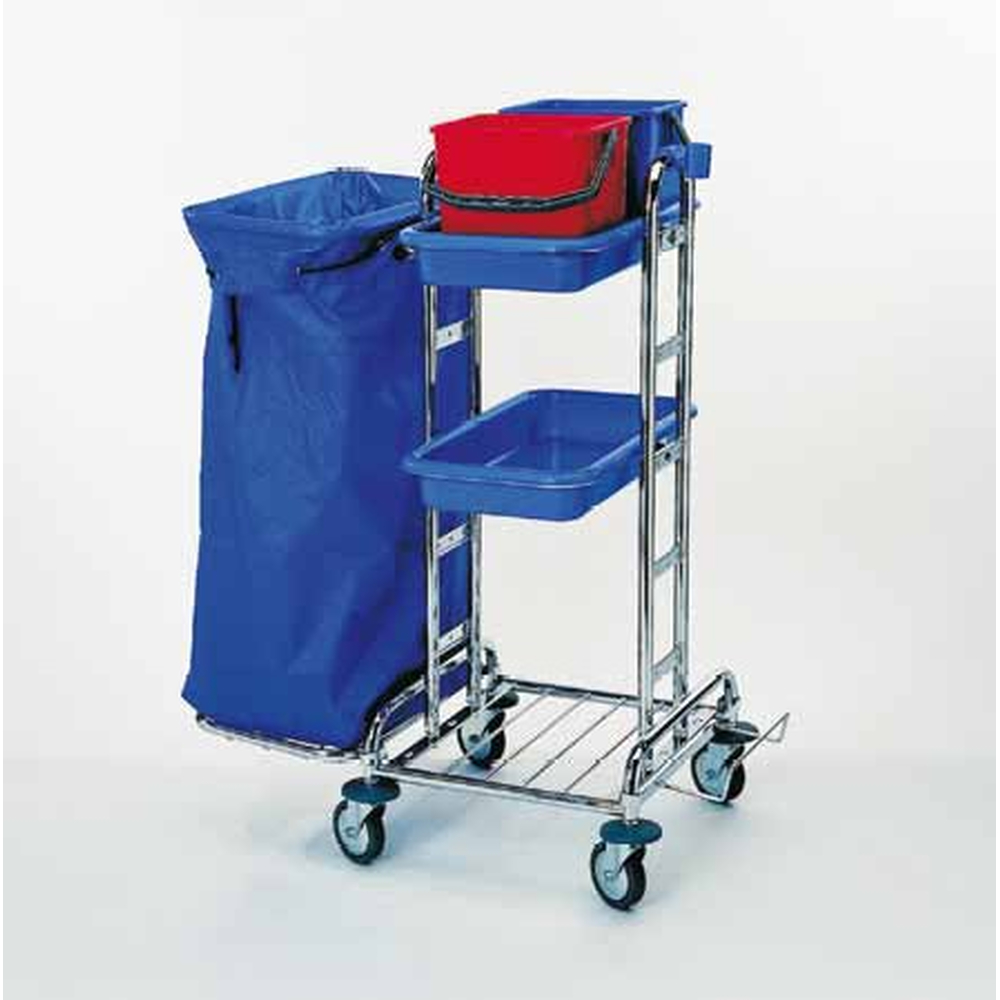 Mit dem Meiko Systemwagen VIII erhalten Sie einen robusten Chrom-Fahrwagen mit kleinem Grundgestell, der Sie für den täglichen Reinigungseinsatz mit Oberflächenreinigung und Müllentsorgung rüstet.
