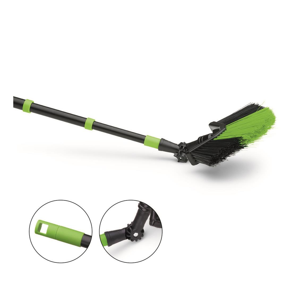 Extra langer 3-fach Teleskopstiel. Abwinkelbarer Kopf. Für einfache Reinigung schwer zugänglicher Stellen, wie Treppenhäuser, hohe Räume, Dachrinnen, etc..