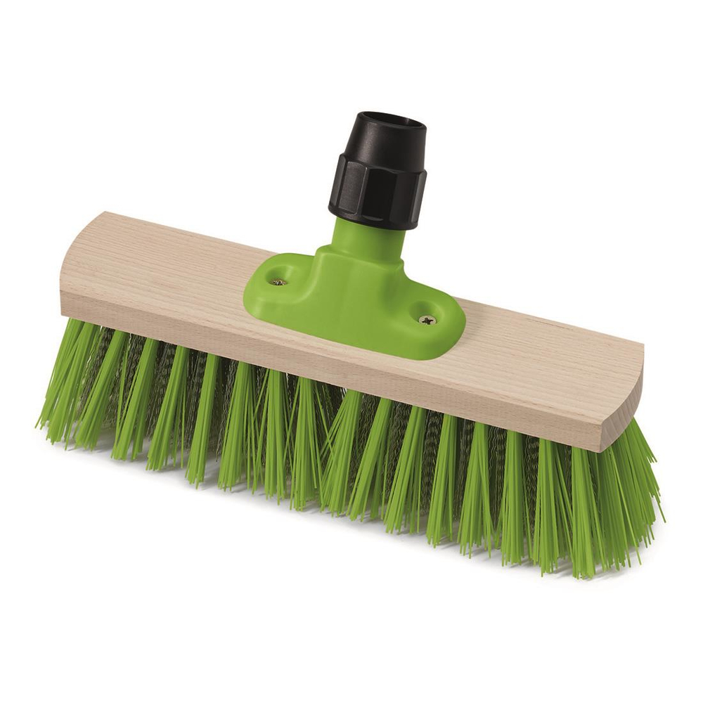 Elaston-Borsten mit Stahldraht-Einlage. Zum gründlichen Entfernen von hartnäckigen Verschmutzungen, wie zum Beispiel angetrocknetes Laub, verkrustete Erde oder Moos. Buchenholz-Körper mit Prestige-Halter.