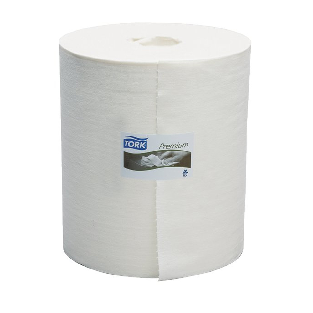 Tork Premium Wisch- u. Reinigungstücher Reinigungstücher 1-lagige Vliesstofftücher, Weiß, Perforiert, Voluminöses Tuch mit textiler Oberflächenstruktur U7W1 Wandhalter System/Bodenständer System, 530104